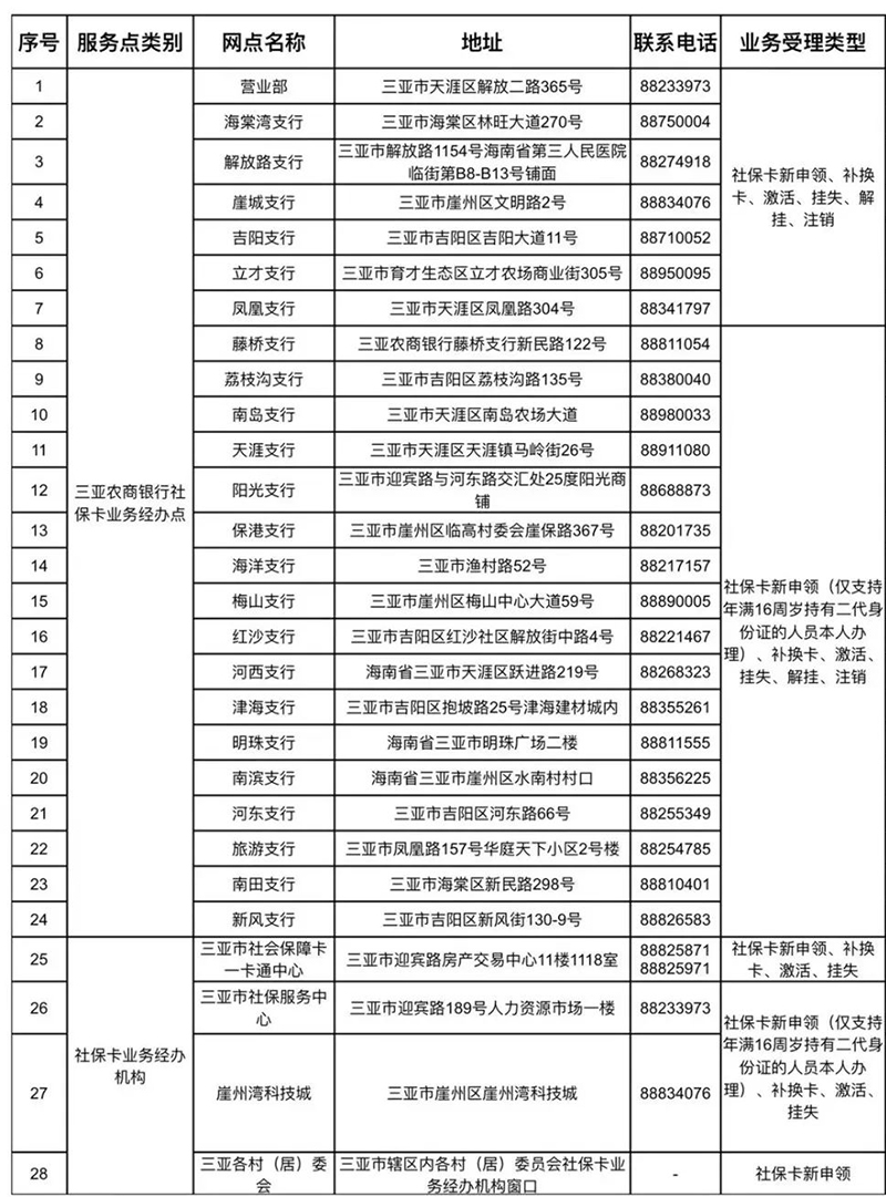 三亞轄區(qū)社??I(yè)務(wù)經(jīng)辦服務(wù)點(diǎn)↓
