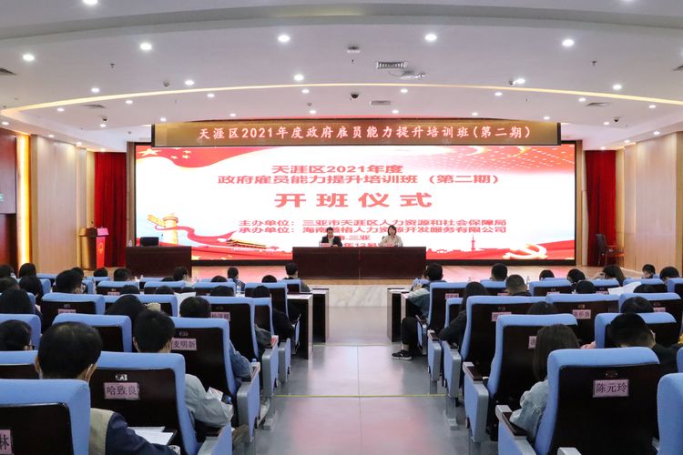 由三亞市天涯區(qū)人力資源和社會保障局主辦,海南道格人力資源開發(fā)服務(wù)有限公司承辦的天涯區(qū)2021年度政府雇員能力提升培訓(xùn)班(第二期),于2021年12月6日-12月7日在康特王府酒店舉辦,三亞市天涯區(qū)人力資源和社會保障局副局長吳金滿同志做開班動員講話,參加培訓(xùn)的是天涯區(qū)的政府雇員,共計272人。