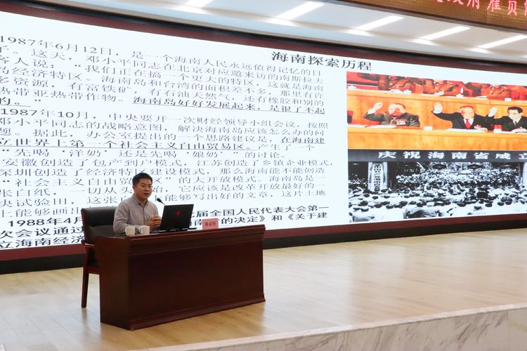 本次培訓(xùn)班,主要采用課堂理論教學(xué)的學(xué)習(xí)方式,學(xué)習(xí)了《職場職業(yè)心理疏導(dǎo)》、《弘揚憲法精神,維護憲法權(quán)威》、《解讀海南自由貿(mào)易港法》、《解讀黨的十九屆六中全會精神》等課程。