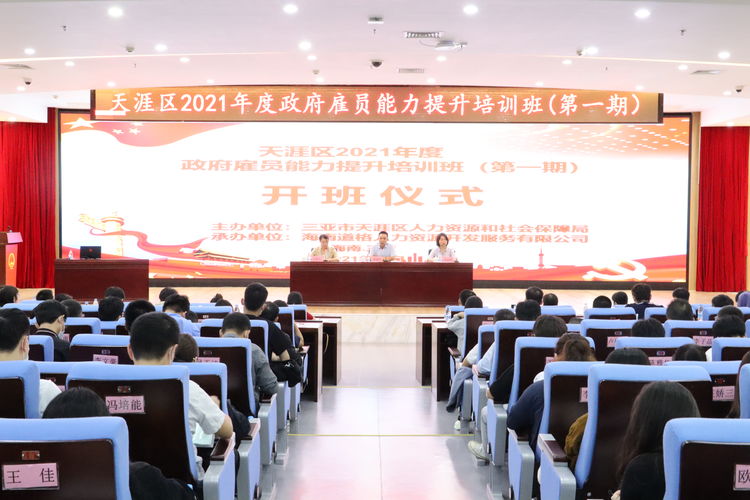 由三亞市天涯區(qū)人力資源和社會(huì)保障局主辦,海南道格人力資源開發(fā)服務(wù)有限公司承辦的天涯區(qū)2021年度政府雇員能力提升培訓(xùn)班(第一期),于2021年11月29日-12月1日在康特王府酒店舉辦,三亞市天涯區(qū)人力資源和社會(huì)保障局局長(zhǎng)唐建偉同志做開班動(dòng)員講話,參加培訓(xùn)的是天涯區(qū)的政府雇員,共計(jì)234人。